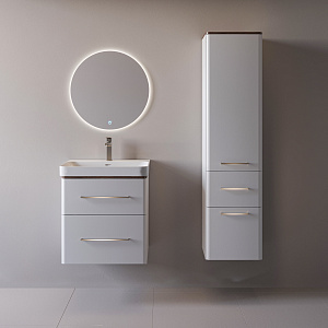 Концентрированный ассортимент: Всего три базовых модуля (подвесные тумбы 60/80 см и пенал 40 см) охватывают большинство востребованных планировок — от компактных санузлов до просторных ванных. Это максимум рыночного покрытия при минимуме складских позиций.