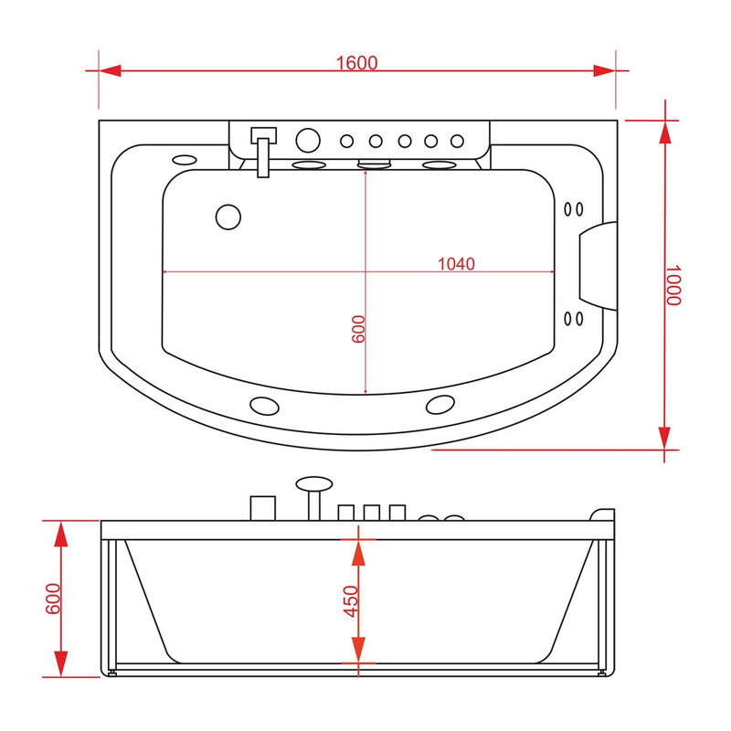Ванна ГМ 1600*1000*600 с насосом OLB-842R с переливом