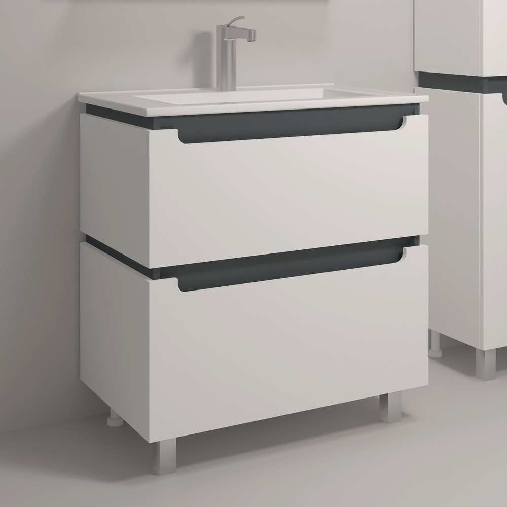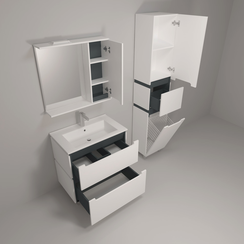 75 Тумба под раковину в ванную Vesta 75 №4 (ум. Оскар 750) белый/графит Pur-клей