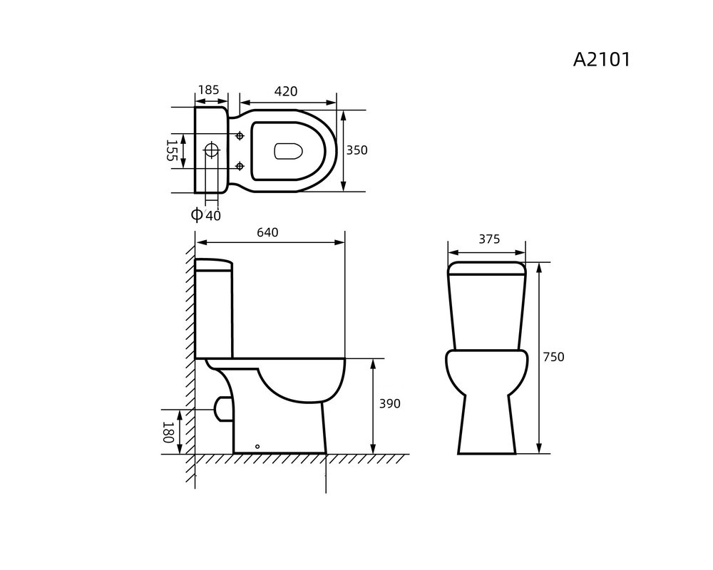A2101 Унитаз-компакт, сиденье ПП, крепления, арматура, гориз. выпуск
