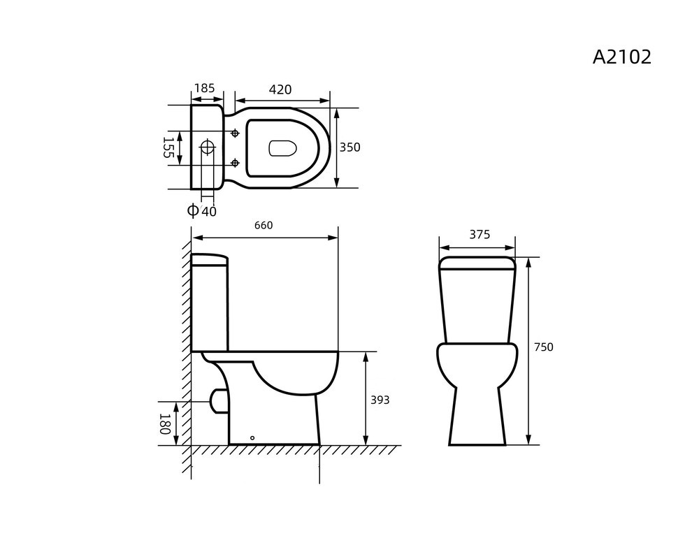 A2102 Унитаз-компакт, безободковый, сиденье ПП, крепления, арматура, гориз. выпуск